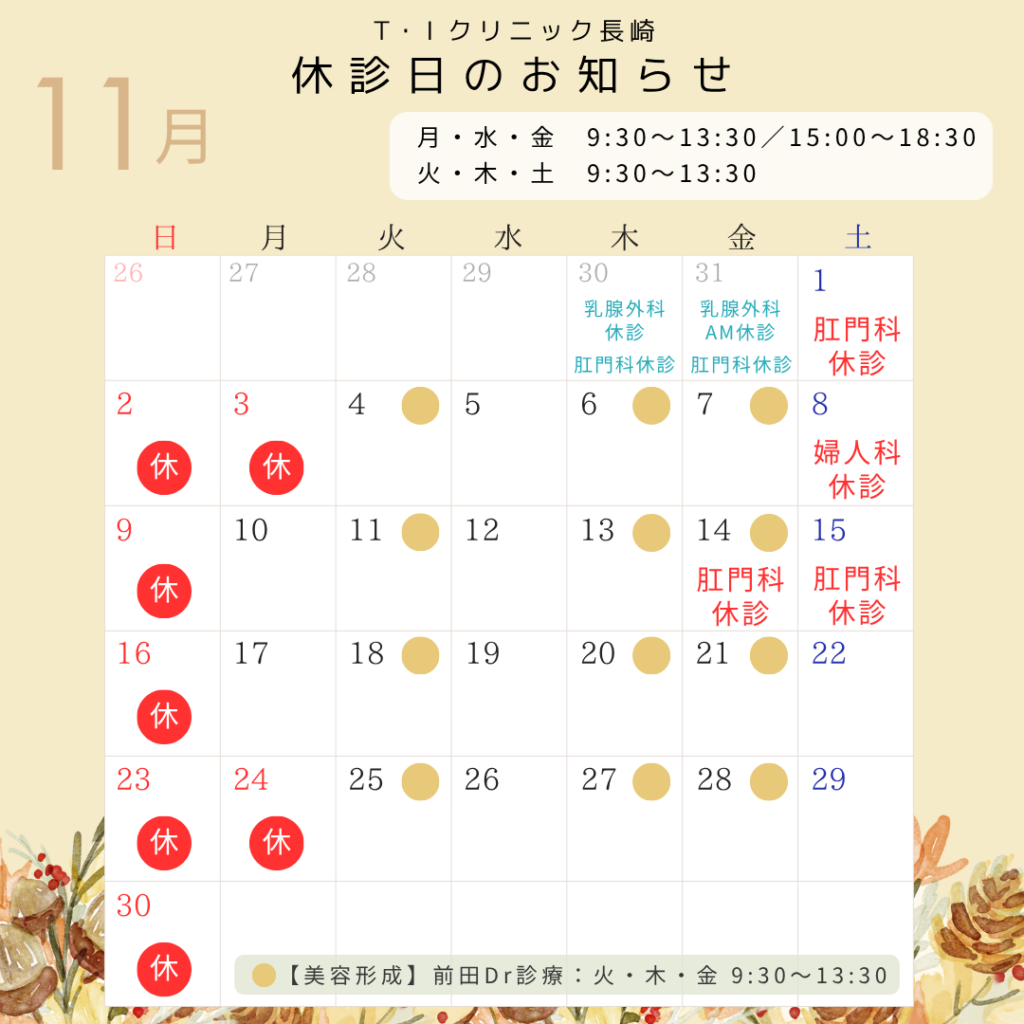 休診前後のご予約は大変混みあいますのでお早目にご予約くださいませ。