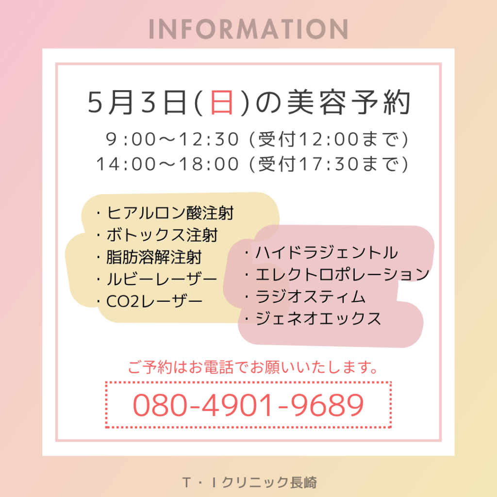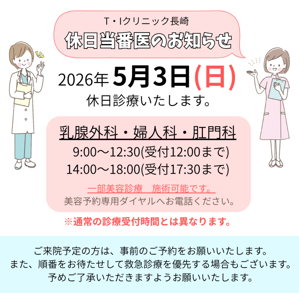 2026年5月3日(日)は、休日当番医として診療いたします。